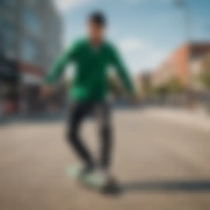 The color psychology behind the green shade also adds depth to its appeal. Green often represents rebirth and energy, resonating well with the high-octane skate culture. In a world driven by influences, wearing a piece that signifies growth could feel naturally relevant for many young skaters trying to carve their respective paths.